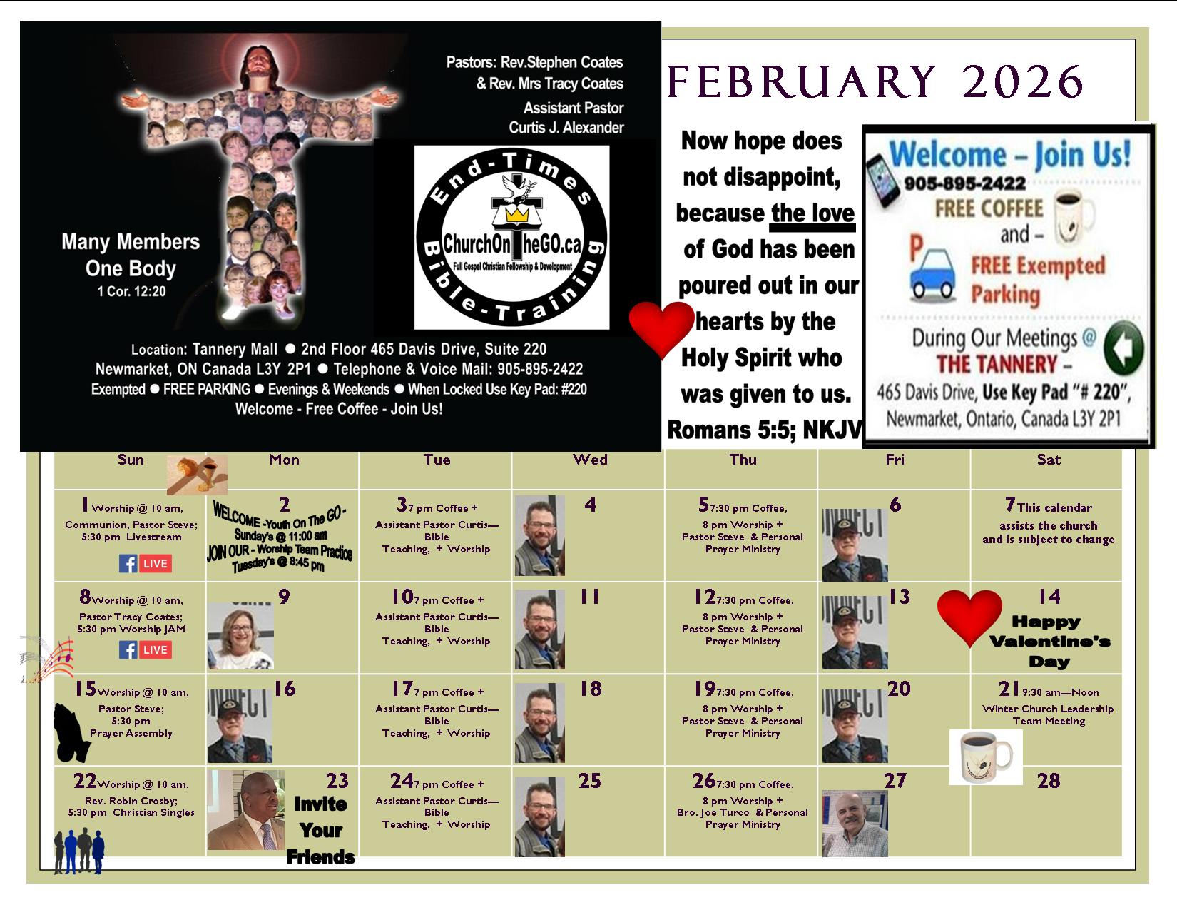 *Note: These calendars assist the church and are subject to change* Welcome to our services! Come enjoy free coffee, tea and snacks. Connect and grow in God! -