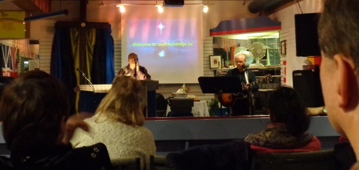 ------ BELOW: Rev Jackie McArthur from Northern Ireland visited us at Church On The GO for two services on Sunday June 1st 2014.