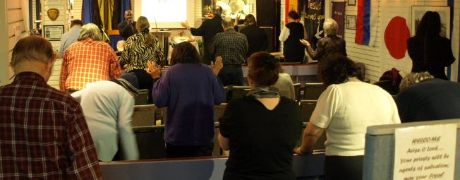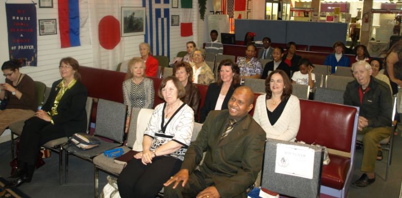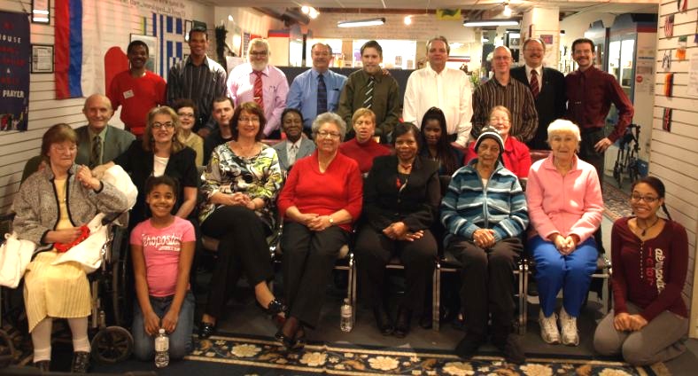 Above- Some of the people at our Thursday evening service Apr. 5th 2012 with Pastor Rev. Al Bowen as guest speaker. Some of our people were not able to be in this shot. Front row (left to right) Jessica, Janelle, Marietta, Alex/ Second row: Victoria, Pastor Tracy, Marie, Aspa, Cathy, Josie, Franca, Elizabeth/ Third row: Evelyn, Sabrina, Serah, Pastor Steve, Pastor Al/ Fourth (Back) row: Charlie, Joe, Julian, Keith, Jason, Ron, Cecil, Mathew, Pastor Curtis