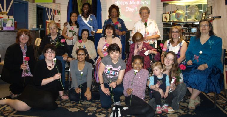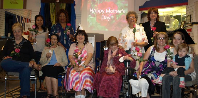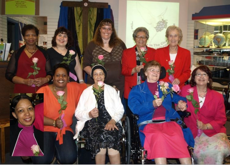 (ABOVE) The Mothers of Church On The GO. (Present May 8, 2011). TOP ROW LEFT TO RIGHT: Lunia, Aspa, Anne, Mina, Evelyn BOTTOM ROW LEFT TO RIGHT: Bertha, Elizabeth, Pastor (Emeritus) Marg, Pastor Tracy INSET: Hillary Pastor Marg (below right) with us for EASTER SUNDAY to Celebrate the Resurrection of JESUS CHRIST (Photo credit Pastor Tracy) To the left is Janelle and Jessica is in the Middle. Taken Sunday Apr. 24/11