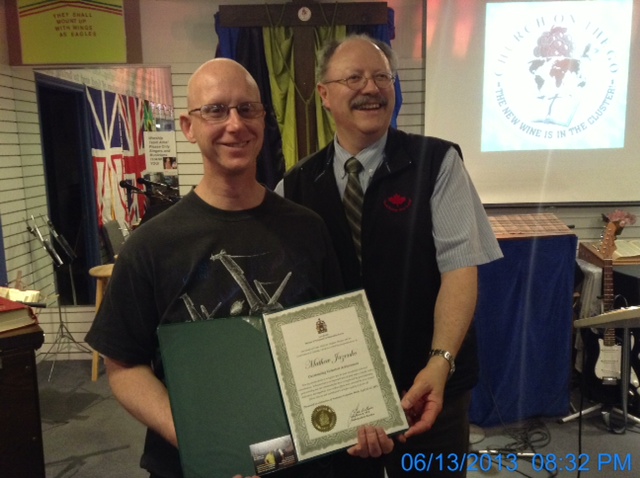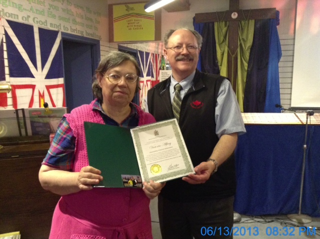- - - - - - - - - - - - - - - - - - - - - - - - - - - - - - - - - - - JUNE 2013- NEW PHOTOS! Canadian Volunteer Recognition Certificates for our Faithful Volunteers - From Lois Brown, MP for Newmarket-Aurora on behalf of Prime Minister Stephen Harper. Certificates were delivered to the church and presented to members by Lead Pastor Rev. Stephen Coates! Many thanks to those in our church who volunteer their time to the regular operations of our church! Each one of you is a wonderful blessing!