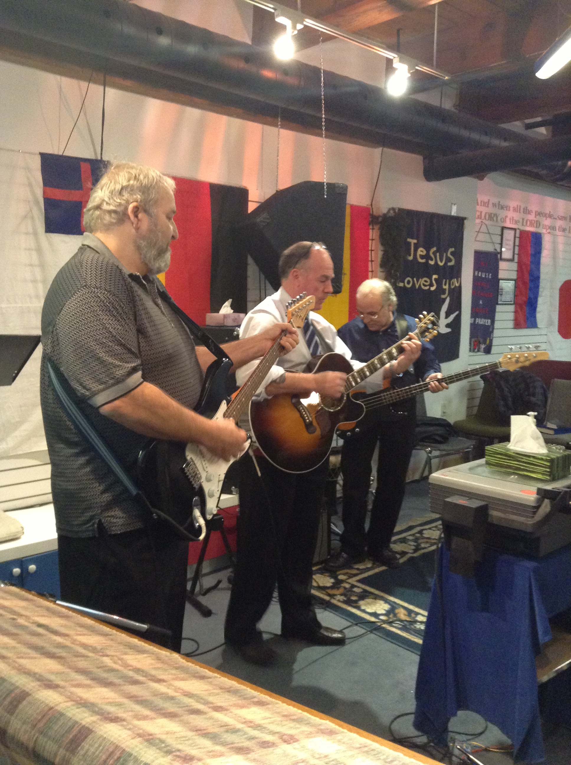 Above: Honouring the board and elders of Church On The GO, Resurrection Sunday, March 31 2013. Above: Prophetic Minstrel Jackie McArthur (Middle) from Northern Ireland Jams to the Lord with Keith (left) and Danny (right) Sunday evening March 24th 2013. Photo taken in Newmarket, Ontario, at Church On The GO.